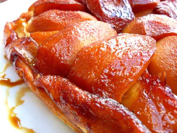 Tarta tatin de melocotón y canela.