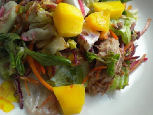 Ensalada de atún y melocotón.