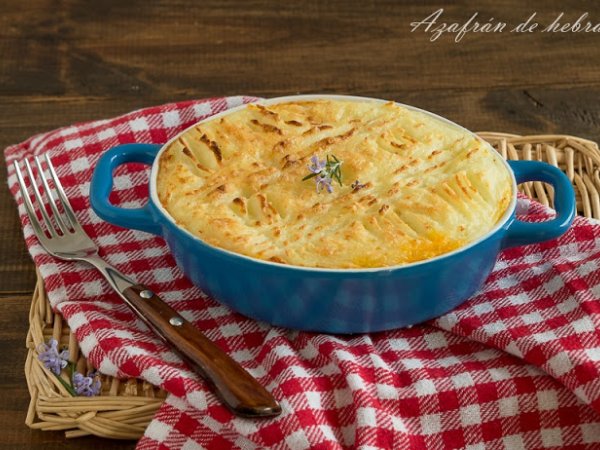 En una fuente de horno colocar la carne y encima extender el puré de patatas, rallar un poco de queso por encima y meterlo a gratinar en el horno. Cuando esté ligeramente dorado, listo para servir.