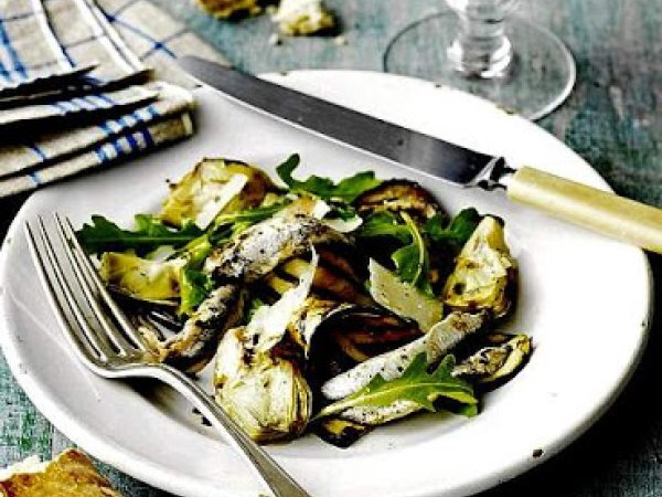 Ensalada de berenjenas alcachofas y anchoas.