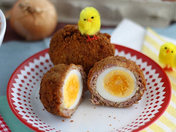 Pasar el huevo por harina y cubrirlo con la carne aplastada.