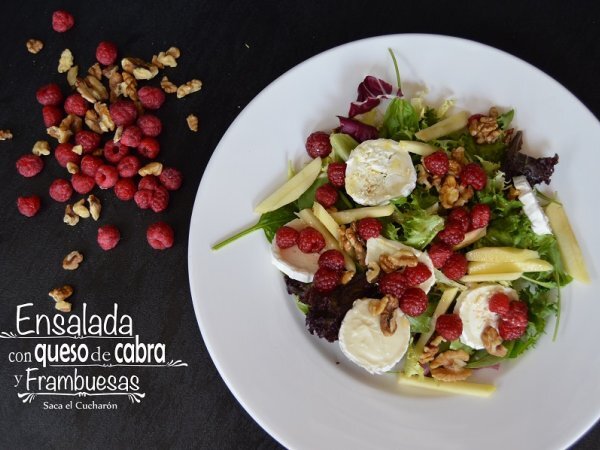 Ensalada de queso de cabra y frambuesas.