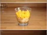 Añadimos el melocotón troceado y sobre este una buena capa de nata montada. Decoramos al gusto y ya tenemos nuestro triffle.