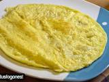 Batimos los huevos, añadimos una pizca de sal y azúcar. Haremos la tortilla en una sartén grande para que así la tortilla nos quede lo más fina posible.