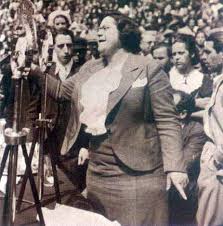 | Federica Montseny en el mitin de la CNT en Barcelona en 1977. |