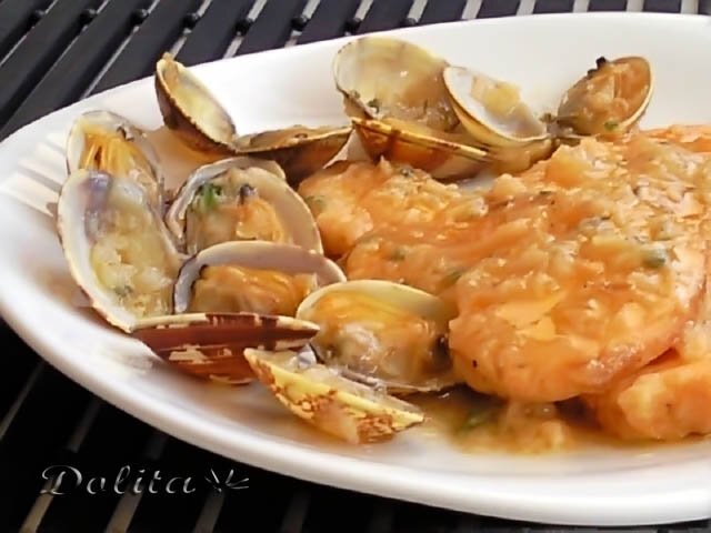 Tintoreta con almejas con salsa de sidra.
